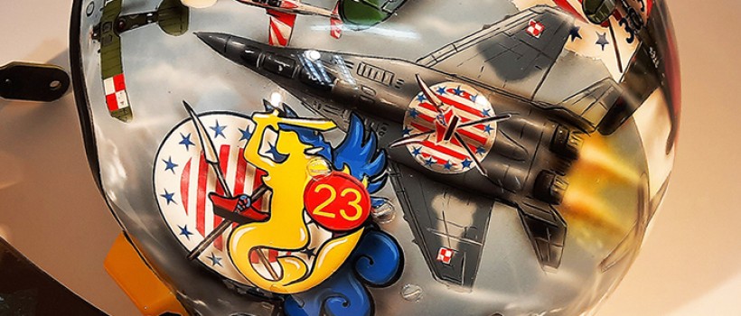 Przy WSPÓŁPRACY I Z INICJATYWY STOWARZYSZENIA NIEBO BEZ GRANIC, MIAŁEM WIELKĄ PRZYJEMNOŚĆ POMALOWAĆ HEŁM, ILUSTRUJĄC HISTORIĘ POLSKIEGO LOTNICTWA WOJSKOWEGO.